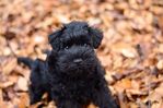 Schnauzerpup in de blaadjes